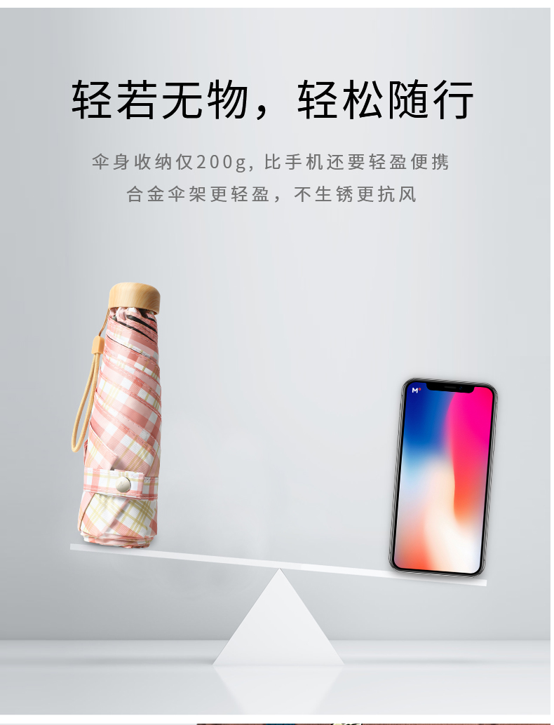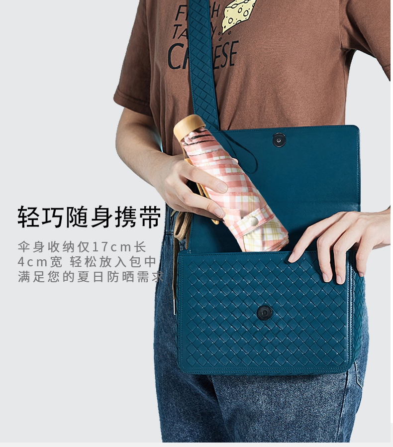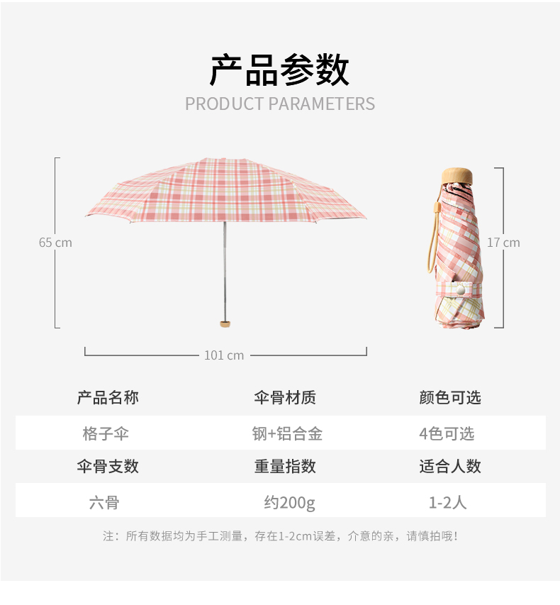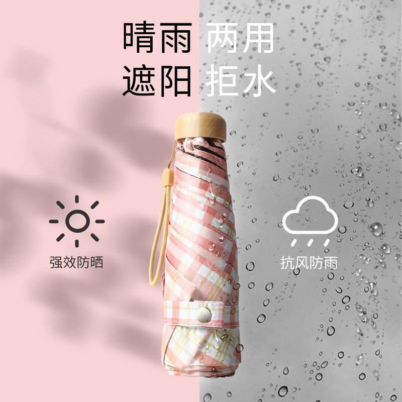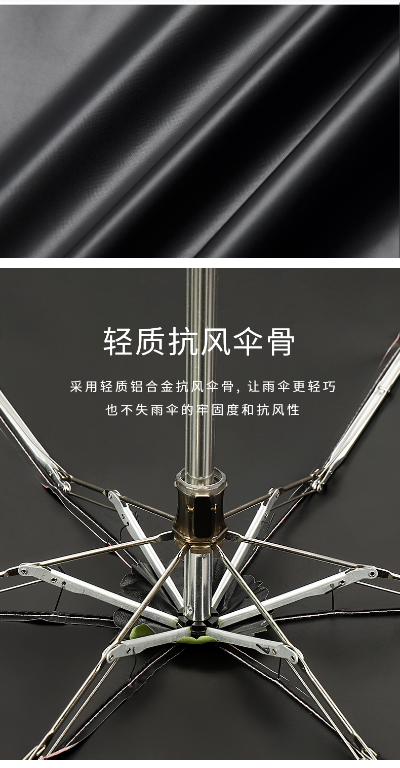 Name: 50% Off Six-Rib Black Coated Fabric Pocket Umbrella Frame: Black steel frame Canopy: Black coated fabric Handle: ABS Specifications: 50*6 ribs, diameter when open 95 cm, length when folded 18 cm Packaging: Matching color fabric cover, matte bag packaging Quantity: 100 pieces per box Box size: 45*35*30 cm Individual package size: 17.5*8.5*5.5 cm Weight: 0.23 kg Gross weight: 25 kg
