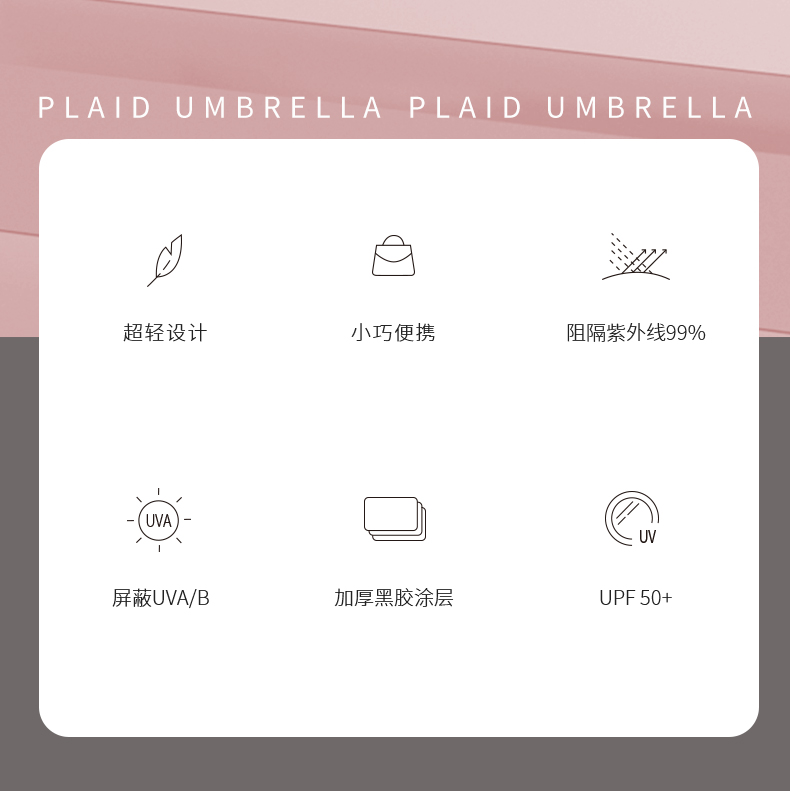 Name: 60% Off Color Matching Umbrella Case Frame: Black Steel Frame Canopy: Black Coated Fabric Handle: ABS Specifications: 50*6K Diameter when open (cm), Length when folded (cm) Packaging: Same color fabric cover, bag packaging Quantity: 60 pieces/box Box dimensions: 48/28/30