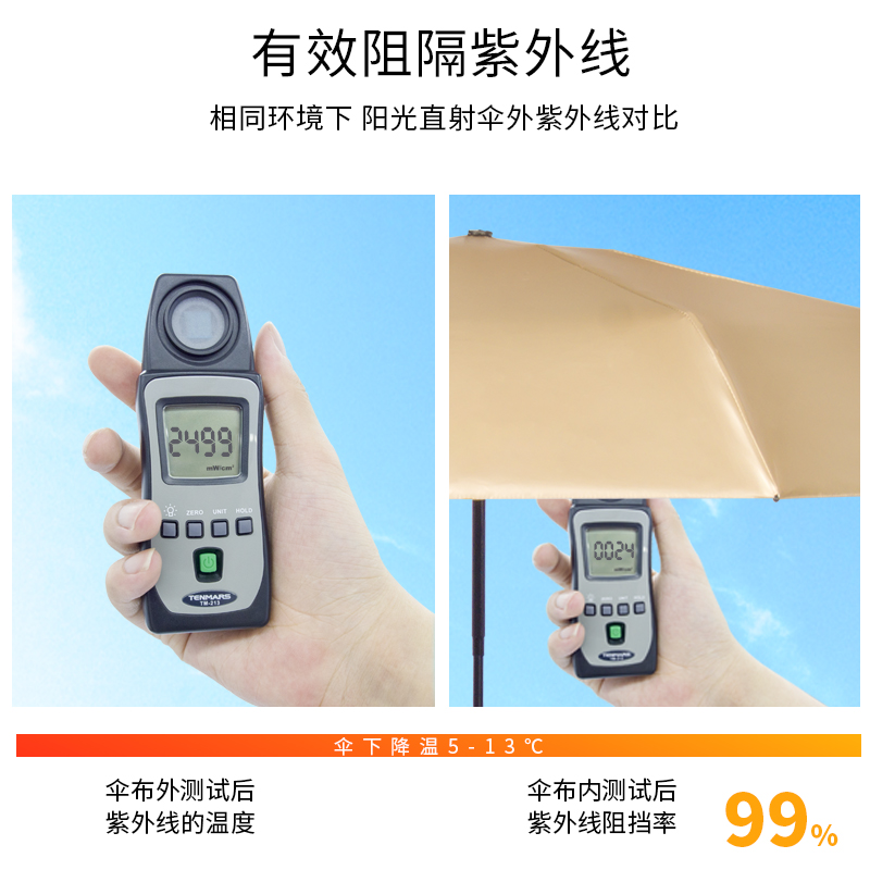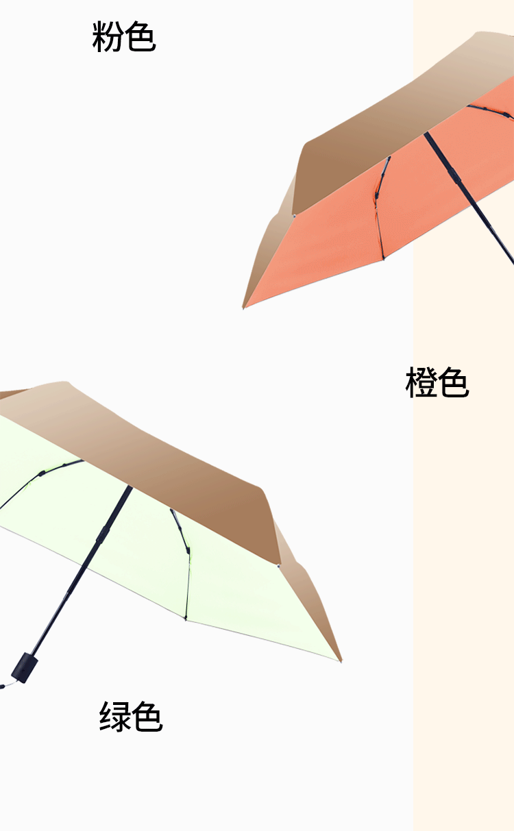 Name: Colorful Coated Five-Fold Umbrella Frame: Gold-colored aluminum alloy frame Canopy: Double-sided floral black coating fabric, semi-shading black coating Handle: Solid wood handle Specifications: 54*8, diameter under umbrella 96cm, folded length 18cm Packaging: Matching color fabric sleeve, bagged Quantity per box: 60 pieces/box Box dimensions: 50/32/30