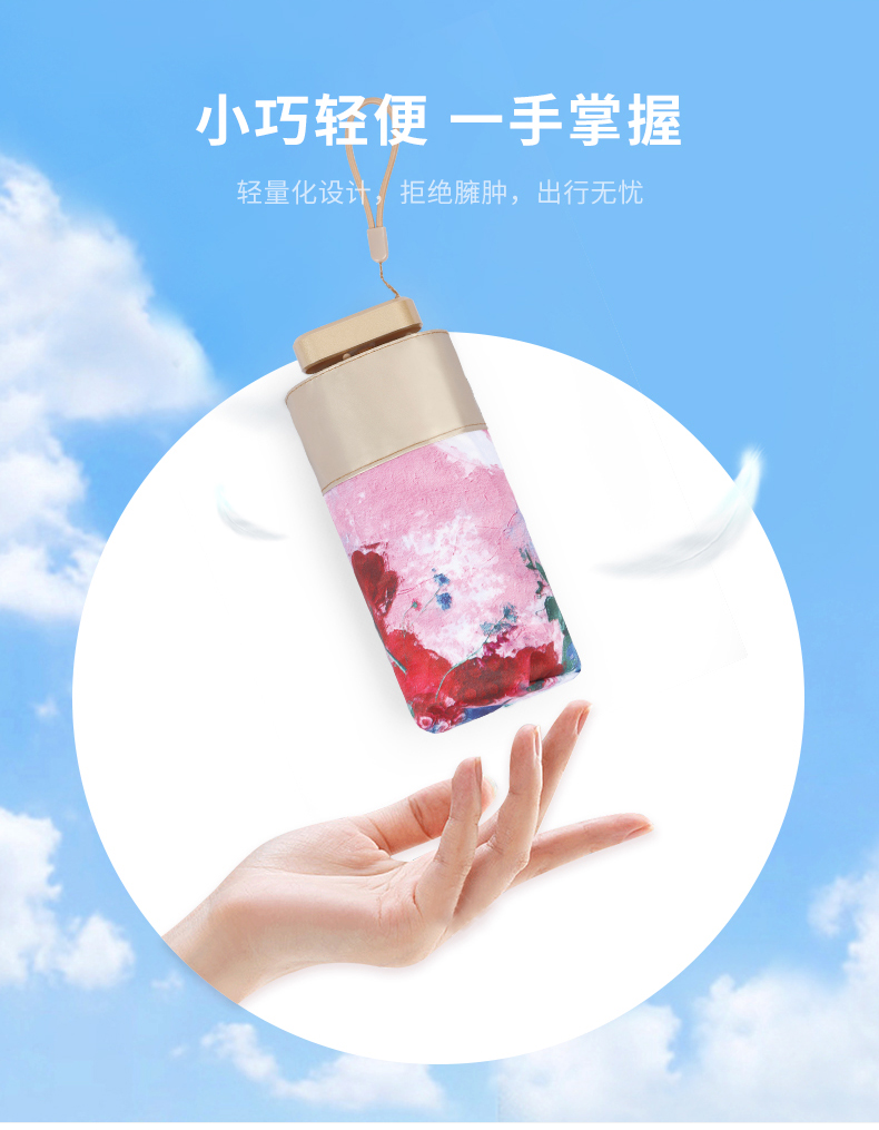 Name: 50% Off Six-Rib Black Coated Fabric Pocket Umbrella Frame: Black steel frame Canopy: Black coated fabric Handle: ABS Specifications: 50*6 ribs, diameter when open 95 cm, length when folded 18 cm Packaging: Matching color fabric cover, matte bag packaging Quantity: 100 pieces per box Box size: 45*35*30 cm Individual package size: 17.5*8.5*5.5 cm Weight: 0.23 kg Gross weight: 25 kg
